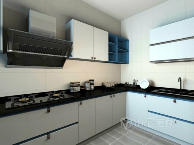 黑色的抽油煙機(jī),搭配黑色的灶臺(tái),臺(tái)面,一體感一涌而出。配上白色的柜體,時(shí)尚感十足。