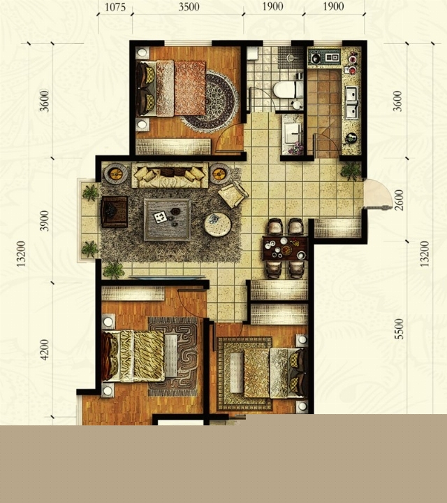 紋理清晰的木質(zhì)地板,散發(fā)出大自然氣息。