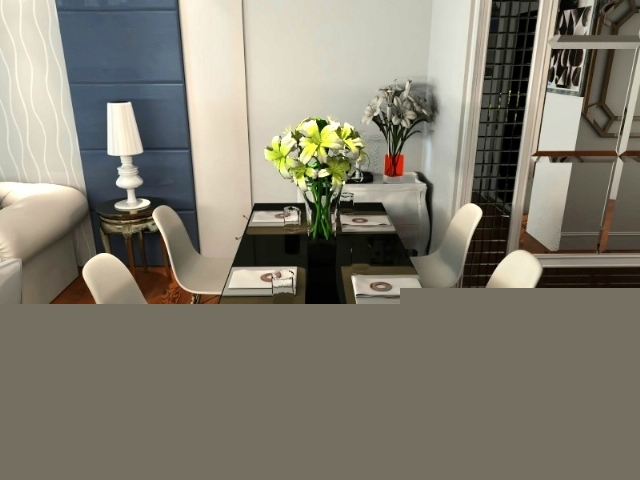 玻璃餐桌搭配木質(zhì)的支架,極具特色。