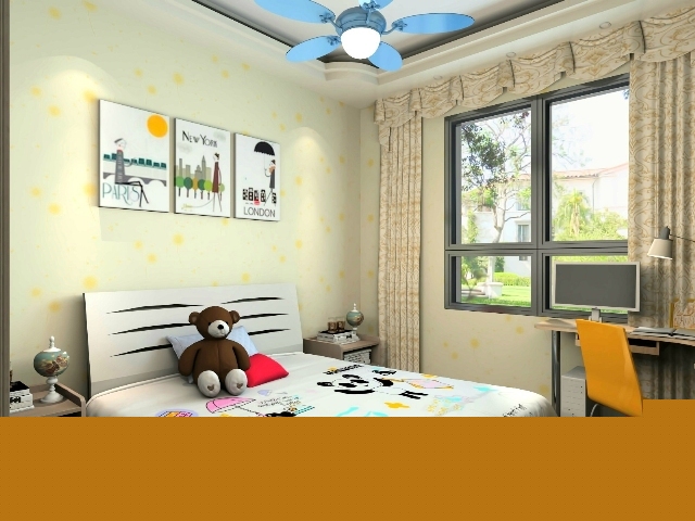 臥室整體給人溫馨的感覺,簡單的吊頂,暖色的墻面,相信會有一個美好的夜晚。