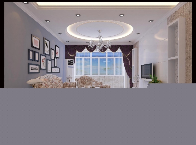 客廳吊頂以圓形為基準,采用歐式線條顯示其美感