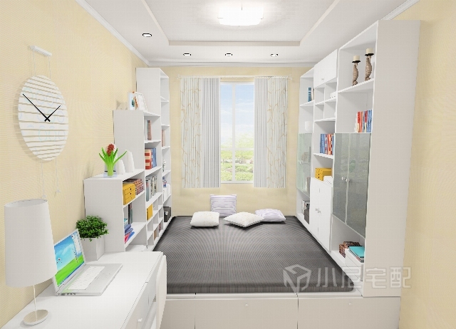 榻榻米的書房,豐富的儲物空間,書架、書桌,既是書房又是臥室,