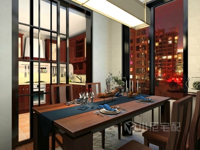 餐廳與廚房相連,一家人在一起做飯吃飯其樂融融。
