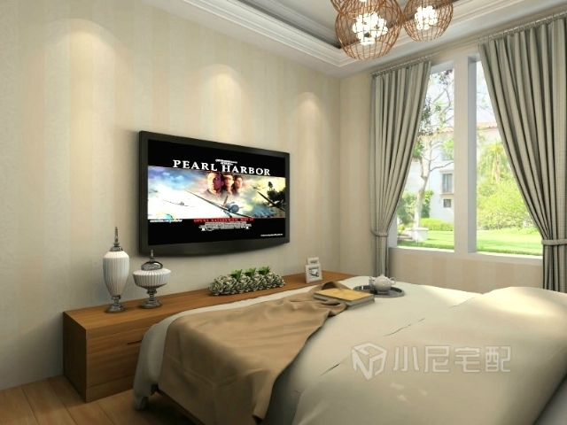 簡單的實木電視柜,幾件普通的擺設,豐富又不失整潔
