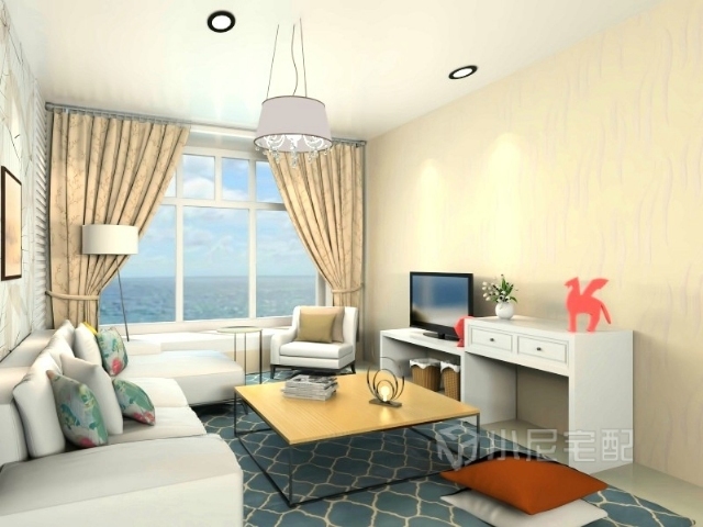 白色的沙發,鮮艷的抱枕,顏色的互補融合,怎么看都那么溫暖