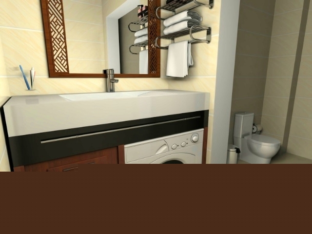 衛(wèi)生間:做干濕分離,在此處應(yīng)有門(渲染要求去掉了)將洗衣機(jī)與臺(tái)盆做在一處,既節(jié)約了空間又使整個(gè)空間不會(huì)呆板賦予狹小空間的色彩多變。