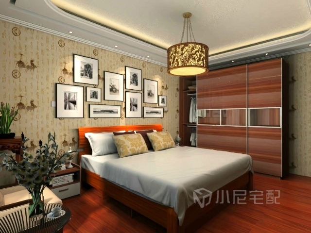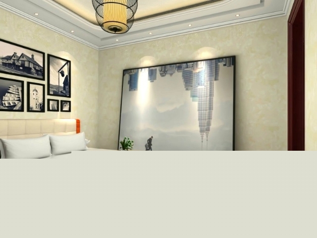主臥室:整個(gè)主臥是非常的寬敞,在進(jìn)門擱置一組推拉衣柜后,緊挨著床頭柜及2米的大床,靠近窗戶的地方放置兩組簡(jiǎn)單的沙發(fā)及小茶幾,作為躺臥疲累之際所用,整個(gè)墻面的壁紙選用極具文化特色的樓蘭經(jīng)為飾,暖色為底,營(yíng)造舒適的書(shū)香之家,再搭配以窗格式吊頂和簡(jiǎn)單的綠色植物搭配,烘托自然和諧,文明的絕佳居所。