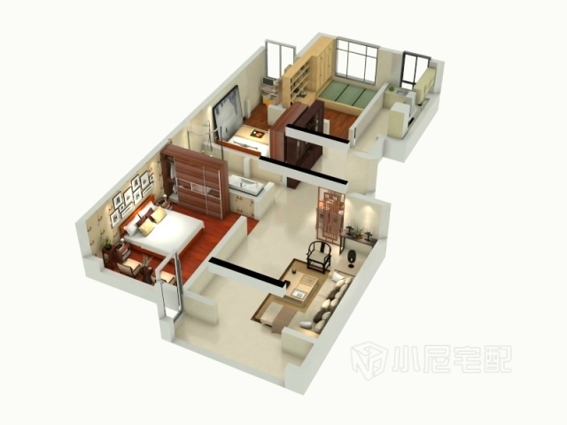 次臥室:作為兒童房來(lái)用的次臥室,因?yàn)樾『⒛昙o(jì)比較大,獨(dú)立性比較強(qiáng),在追求獨(dú)立的時(shí)候有自己特立獨(dú)行的方式,在做簡(jiǎn)單的家具布置和裝飾后,擱置搭配以極度夸張的裝飾畫(huà),內(nèi)容自定,緊連著陽(yáng)臺(tái)書(shū)房