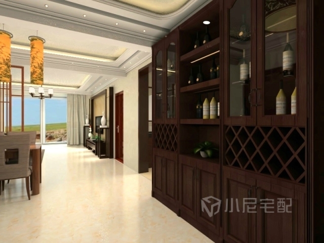 客餐廳過(guò)道:好的設(shè)計(jì)首先要有一個(gè)好的平面,在客廳邊角位置加一組幾案作為點(diǎn)綴,彰顯主人深厚的知識(shí)文化底蘊(yùn)。