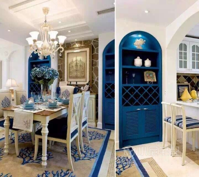 藍色的酒柜白色的墻壁,很好的展現了地中海的韻味。