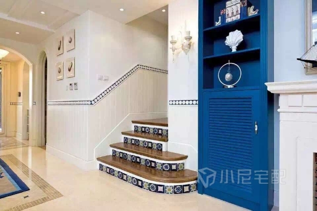 每個臺階上都有藍色拼花做裝飾,精致漂亮。