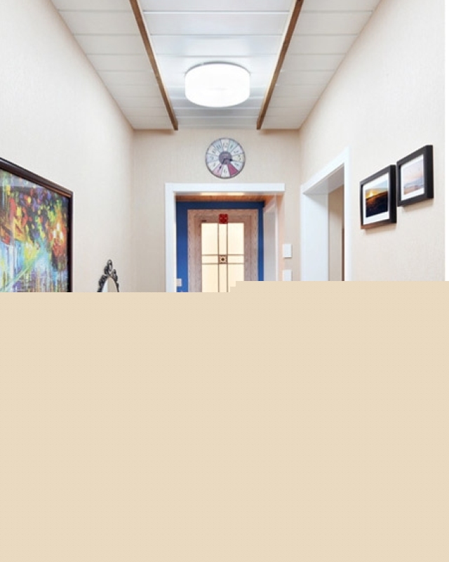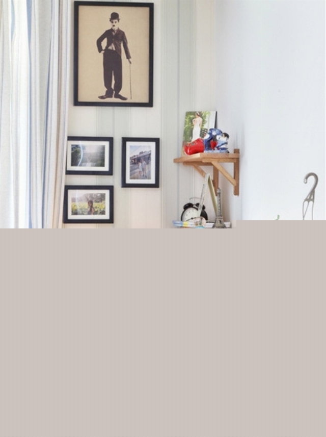 狹長的走廊用來放置儲物柜和梳妝臺,無處不在的裝飾畫成為家中的一道道靚麗風景。