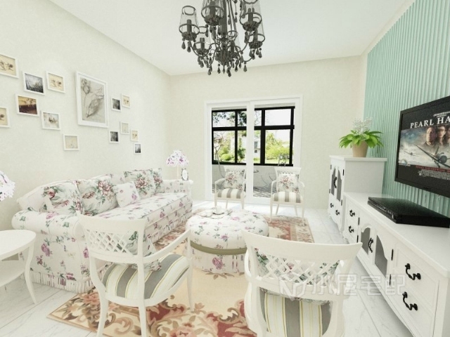美式田園風格的客廳是寬敞而富有浪漫氣息的