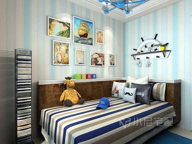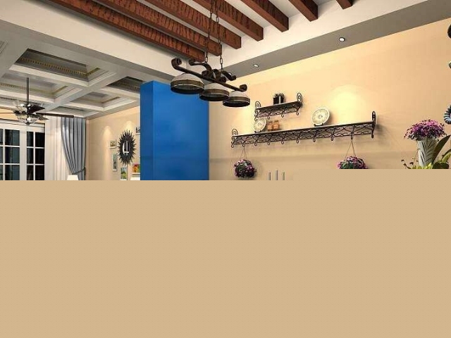 地中海風格的靈魂就是“蔚藍色的浪漫情懷,海天一色、艷陽高照的純美自然”。設計中添加咖色以中和色調,爛漫中不失沉穩