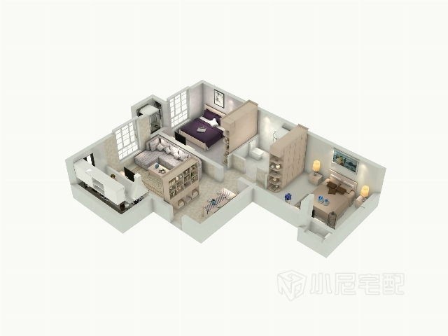 白橡色的衣柜,加一個圓弧轉角,使整個空間更加的自然,溫馨