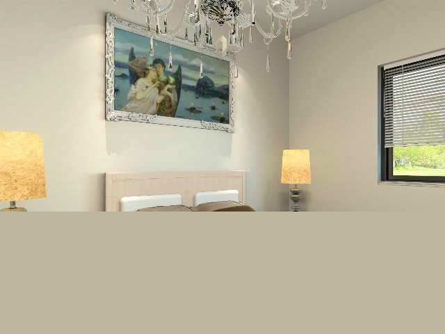 白橡套象牙白色的床頭,搭配歐式的吊燈和壁畫,更顯歐式風格。