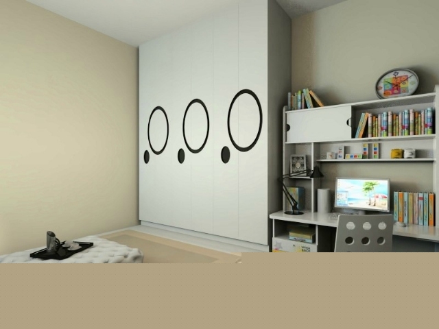 白色的榻榻米,簡單的造型,再加上書桌,是孩子居住的好場所。