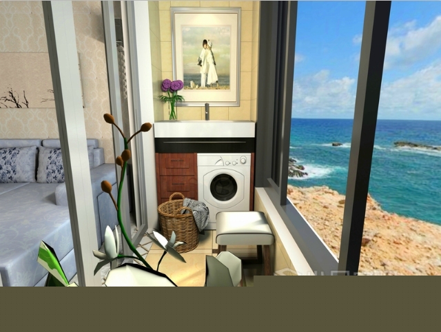充滿了花香氣息,洗衣臺在那,靜靜等待中坐在板凳上望一望窗外