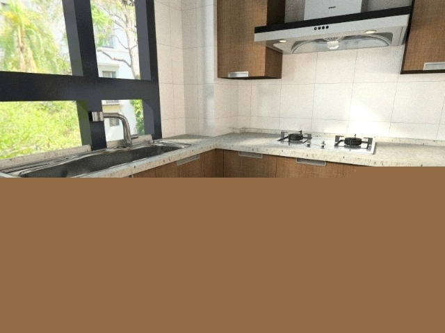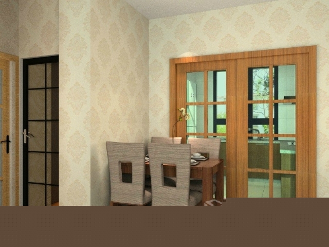餐桌顏色和廚房門色彩相呼應。