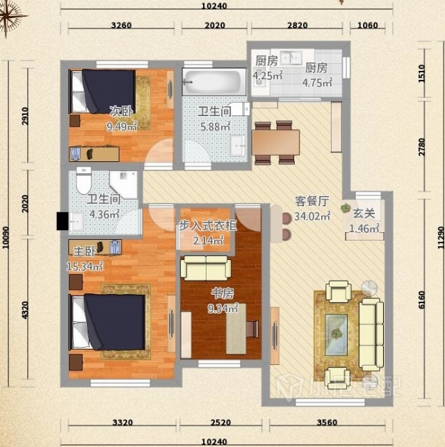 這個小尼宅配套裝木質統一,很復古個性,和空間都很到位