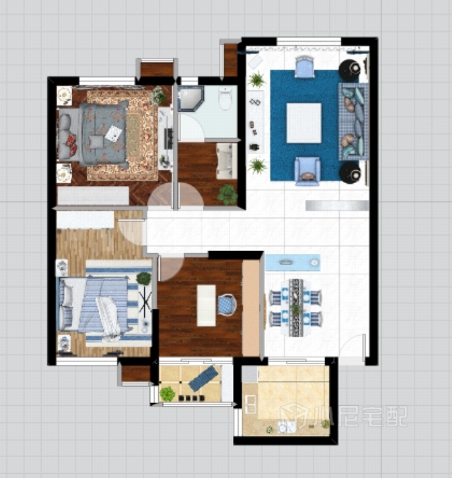 空間主要以藍色白色為主調,精美的裝飾物使空間有錦上添花的作用,使人眼前一亮,整個氣氛既溫暖又休閑。