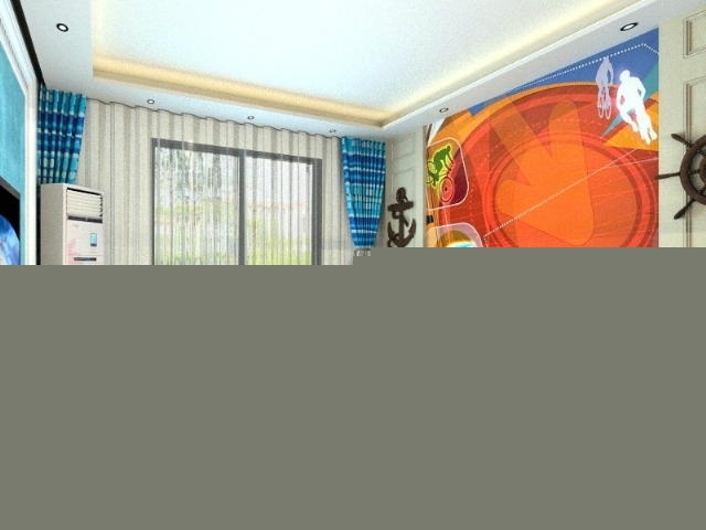 藍白為主調,色彩對比強烈的背景墻增添生機。