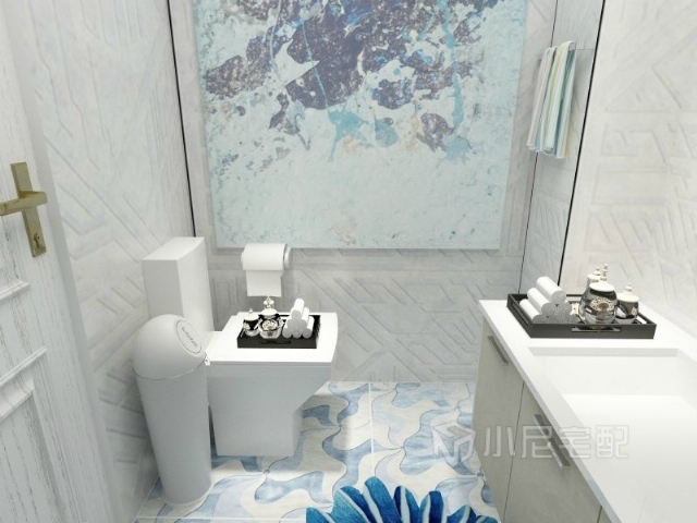 衛(wèi)生間:空間小但功能齊全,地板像是海水的波紋,浪漫有格調(diào)。