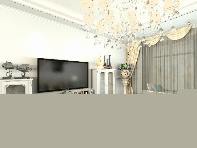 白色的電視柜配合著黑色的液晶電視蘊意出了一款簡單而又時尚