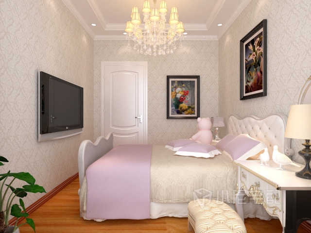 女兒房同男孩房一樣,采取軟裝的突出色調彰顯公主之雅
