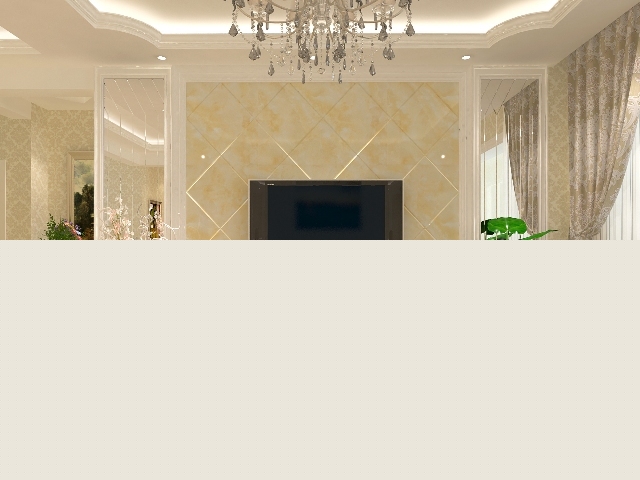 電視背景墻以暖色墻磚和白調鏡面搭配,給人以舒適溫馨之感