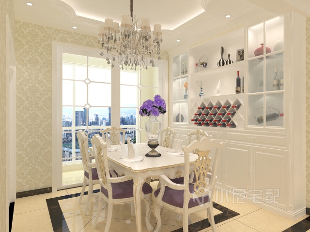 餐廳區,利用波打線和其他功能區進行分割。同樣以暖色調突出餐廳區域