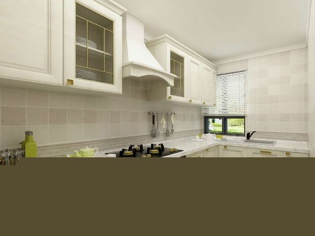 櫥柜造型簡潔,功能齊全,搭配淡色墻磚地磚,顯得小空間更加寬敞明亮。