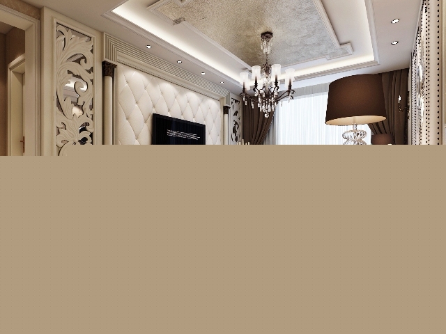 電視背景墻采用軟包,雕花的裝飾,顯示室主人對生活的追求