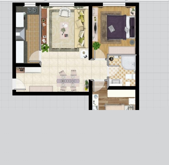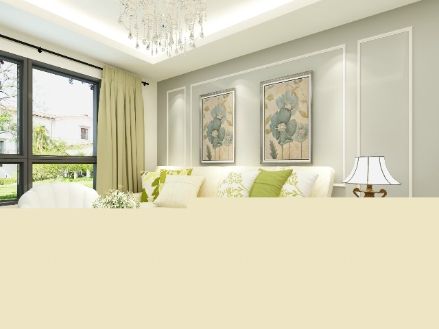 白色的沙發搭配綠色的碎花抱枕,加上同色系的窗簾,灰色的背景墻搭配大幅的裝飾畫,表現出明亮清新的居室。