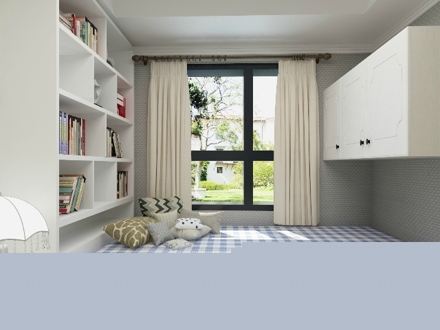 增加臥室的利用率,設計了榻榻米搭配書柜和吊柜,增加了儲物空間。