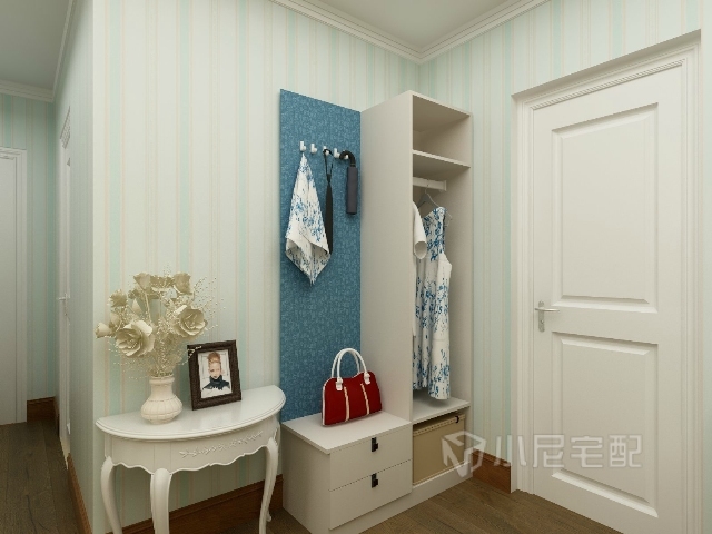 玄關(guān)柜功能齊全,白色的玄關(guān)桌起到修飾的作用。
