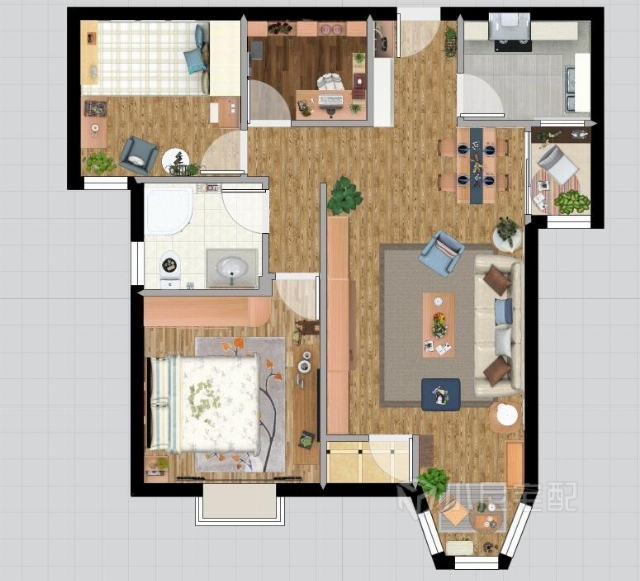用木飾面裝飾了一整面墻,再搭配掛件,起到了柔和了整個空間的效果。