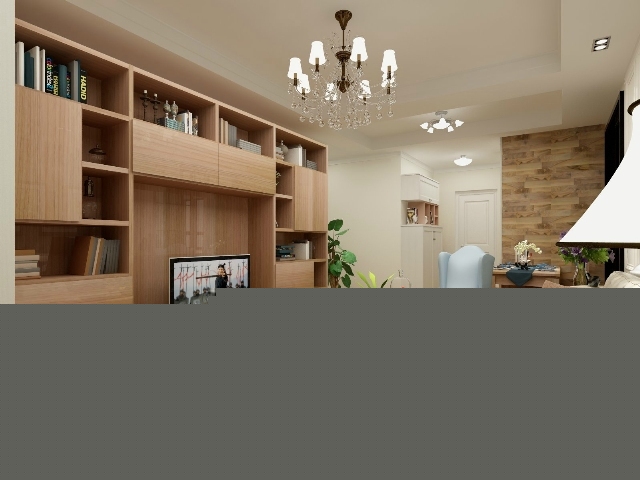 定制電視柜極大的利用了一整面墻,增加了儲物功能。