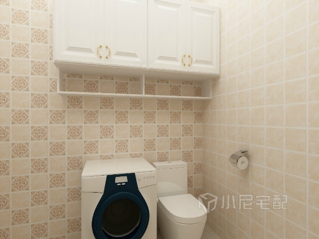 洗衣機和馬桶上方增加儲物柜,滿足衛生間的儲物空間。