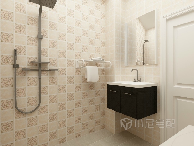 衛生間,干凈的墻磚搭配防滑地磚,壁掛的洗手臺讓整體更加干凈。