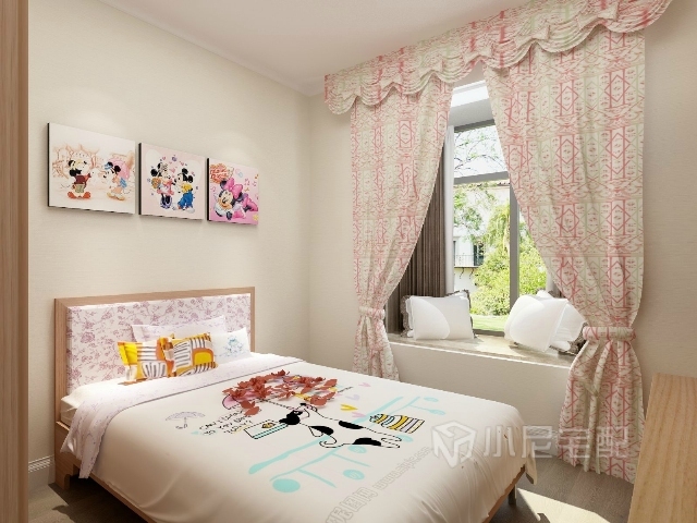 次臥為兒童房,充滿公主氣息的淡粉色。