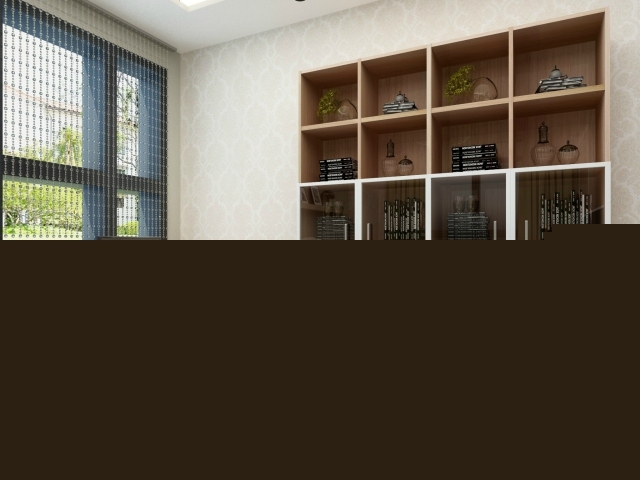 在臥室的一角放上書桌和書柜,工作休息兩不誤。
