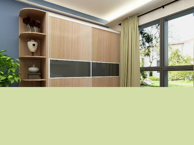 大大的推拉門衣柜為臥室增加了極大的儲物空間,用綠植點綴,顯得生機勃勃。