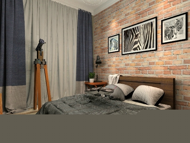 工業風的家俱常有原木的蹤跡。主臥室正是采用了這一點,粗狂的墻面與周圍的家具正好體現這一點