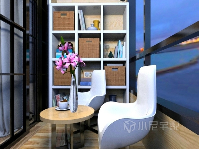 臥室陽臺為粗狂的設計提供一個恬靜的生活小空間