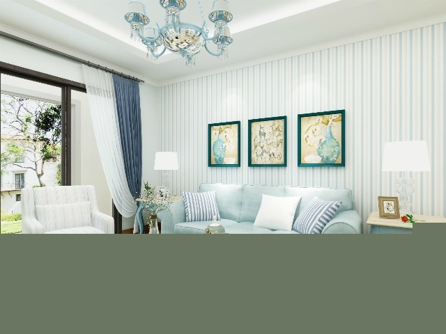 藍白條紋的壁紙與毛絨絨的條形地毯恰如波浪式的海面,帶給人們靜謐的情懷。