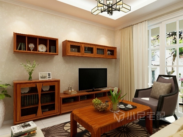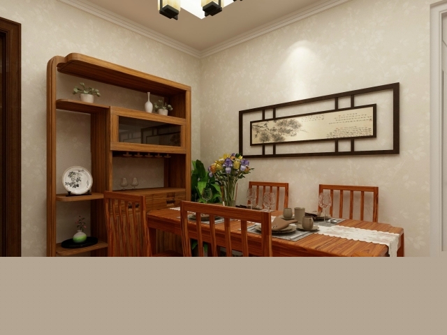 中式風格裝飾選用黃金柚木的實木家具,加上一些細節處的點綴,給人營造出一種沉穩的感覺,通過一些飾品的呼應,古樸中帶著高貴