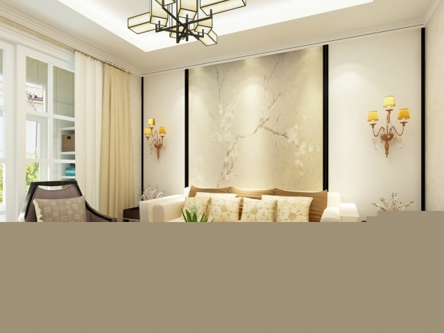 中式風格的背景墻,文藝優雅,搭配深色的地毯, 橘色的壁燈,顯得沉穩大氣。