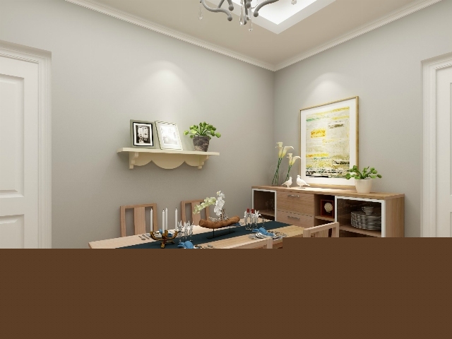 利用壁架放一些裝飾品,餐邊柜起到收納和整理的作用。