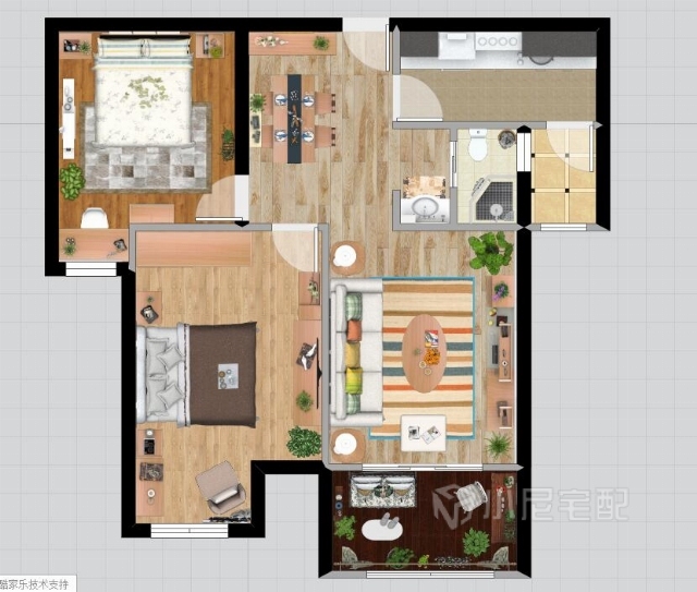 在臥室的一角放上書桌和書柜,合理的利用房間的缺角。